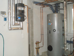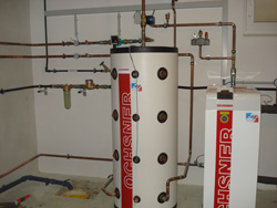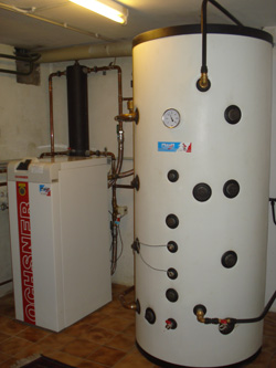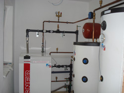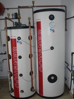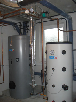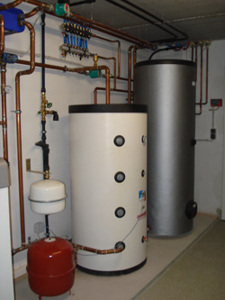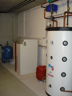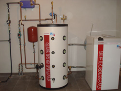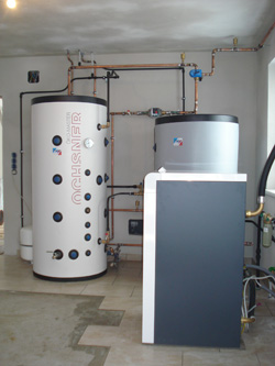 Zweifamilienhaus Familie G. 4963 St. Peter am HartWärmepumpe GMWW 13+ mit kombiniertem Puffer- bzw. Frischwasserspeicher 800 Liter Wärmequelle: Grundwasser Pufferspeicher und Warmwasserbereitung