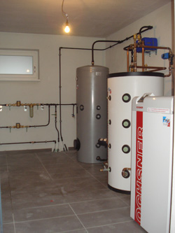 Einfamilienhaus Familie R. 5271 MoosbachWärmepumpe GMWW 15 mit Pufferspeicher 300 Liter und Boiler 500 Liter Warmwasserbereitung mittels Wärmepumpe und Solaranlage