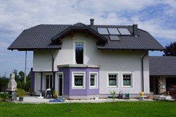 Familie H. 5271 Mauerkirchen6 Solarkollektoren zur Warmwasserbereitung und Heizungsunterstützung Auf-Dach-Montage