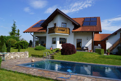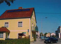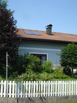 Familie F. 5282 Ranshofen8 Solarkollektoren zur Warmwasserbereitung, Heizungsunterstützung und Schwimmbaderwärmung Solarleitung an der Aussenwand geführt